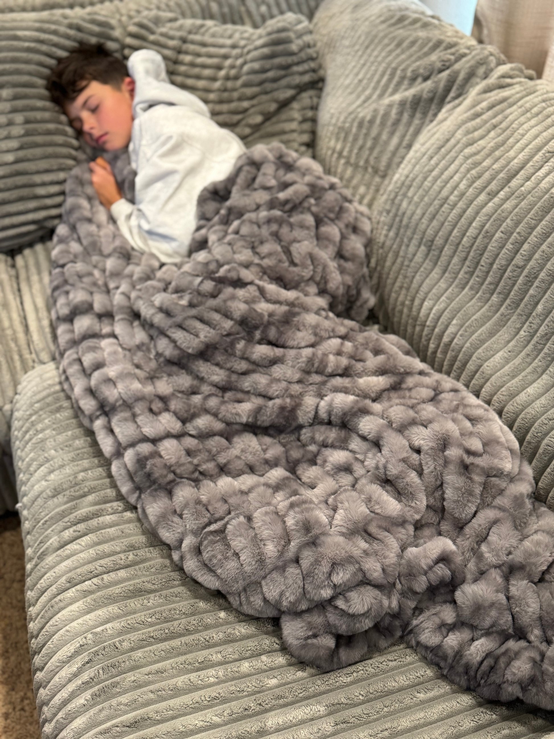 Our luxurious Milan Collection is made from the highest quality Minky Fabric on the market. This thick 75% polyester and 25% spandex material weighs roughly a pound per yard giving each blanket a weighted feel as well as providing an elegant warmth. Combine all of this with the extremely soft and lavish texture of each blanket for the perfect way to cuddle up and relax after a long day.